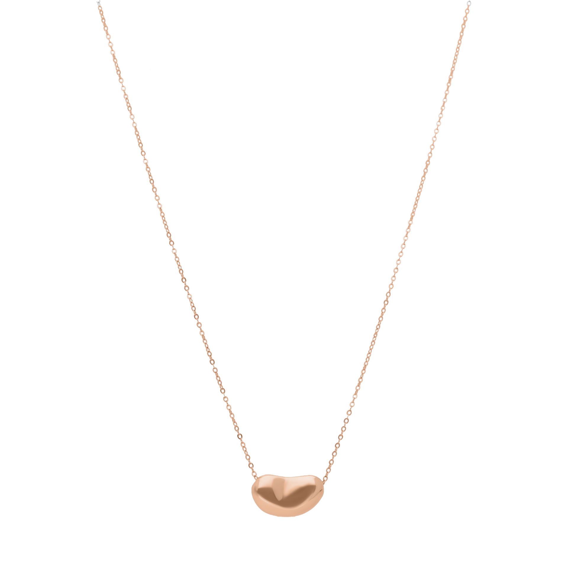 Cadena en oro 14K con dije de frijol hueco y broche salvavidas (44 cm).