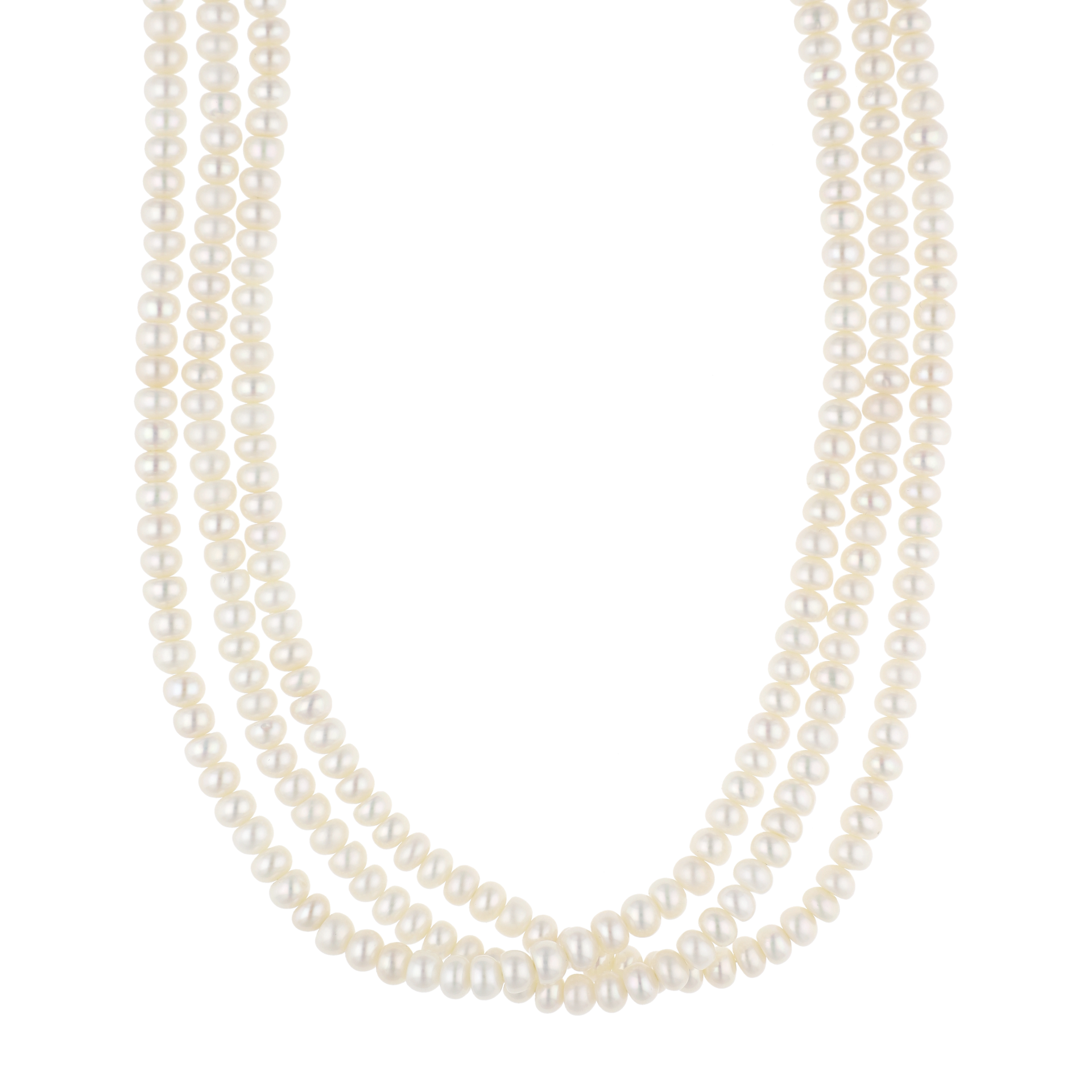 Collar en choker con hilo engarzado de perlas blancas cultivadas de agua dulce (5 mm) en 3 niveles y broche de plata.