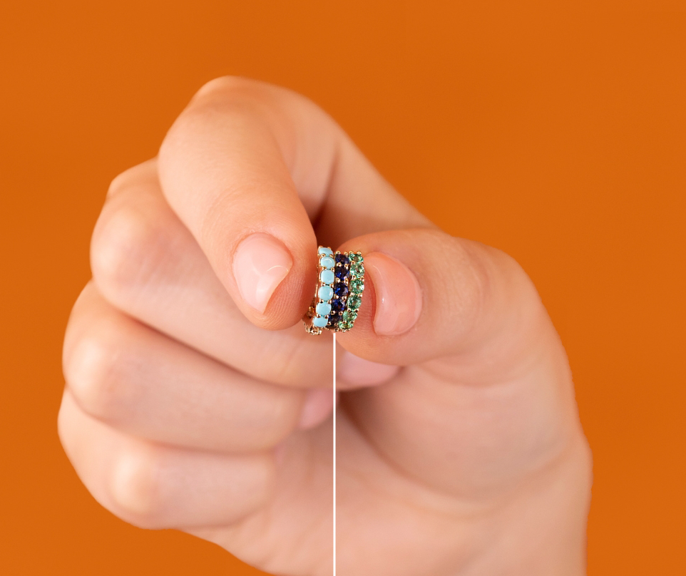 Huggies doble cara brillantes y esmeralda/zafiro/turquesa 14K