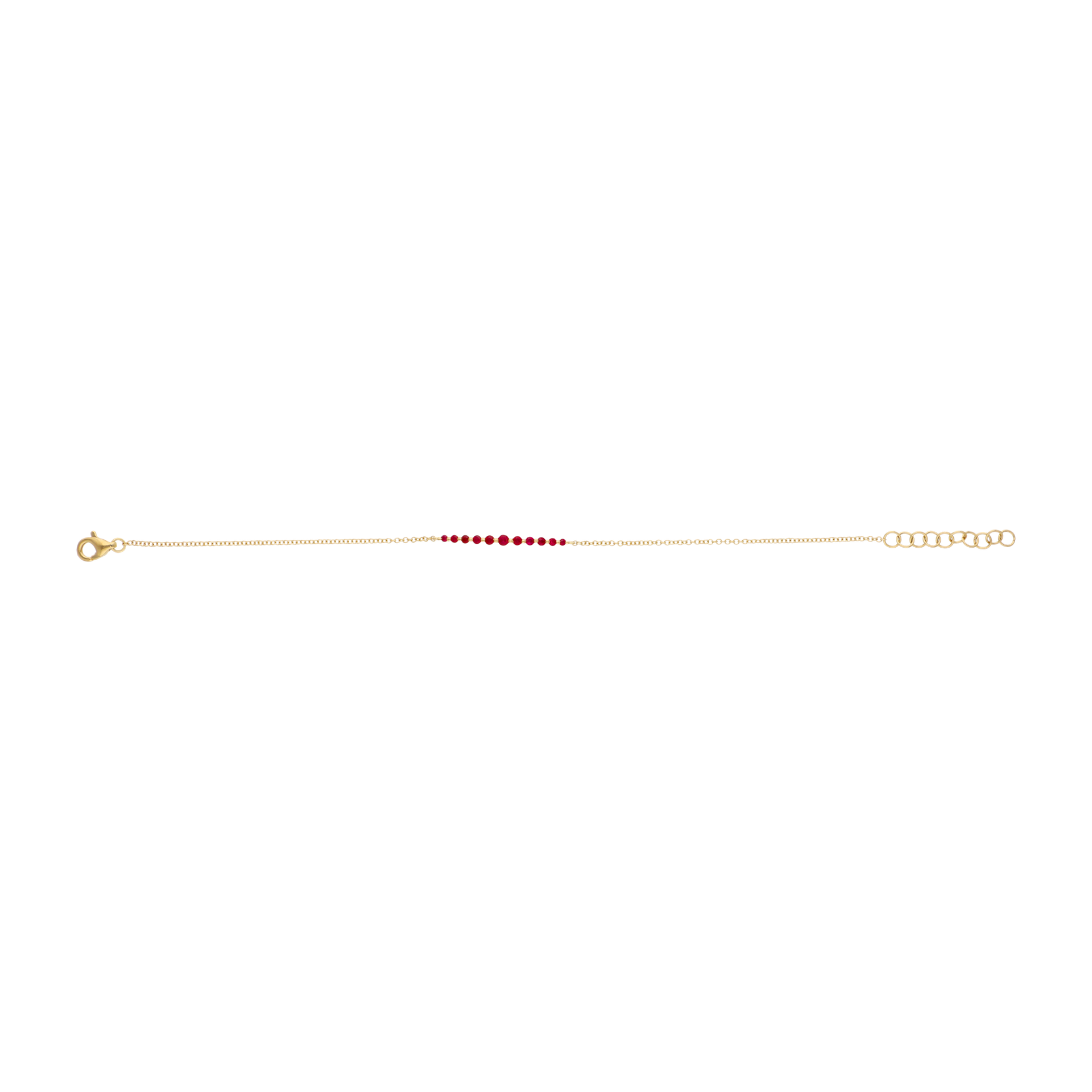 Pulsera en oro amarillo 14K con sonrisa de 11 esmeraldas/rubíes y sistema de perico (15 cm y extensión de 2.5cm).