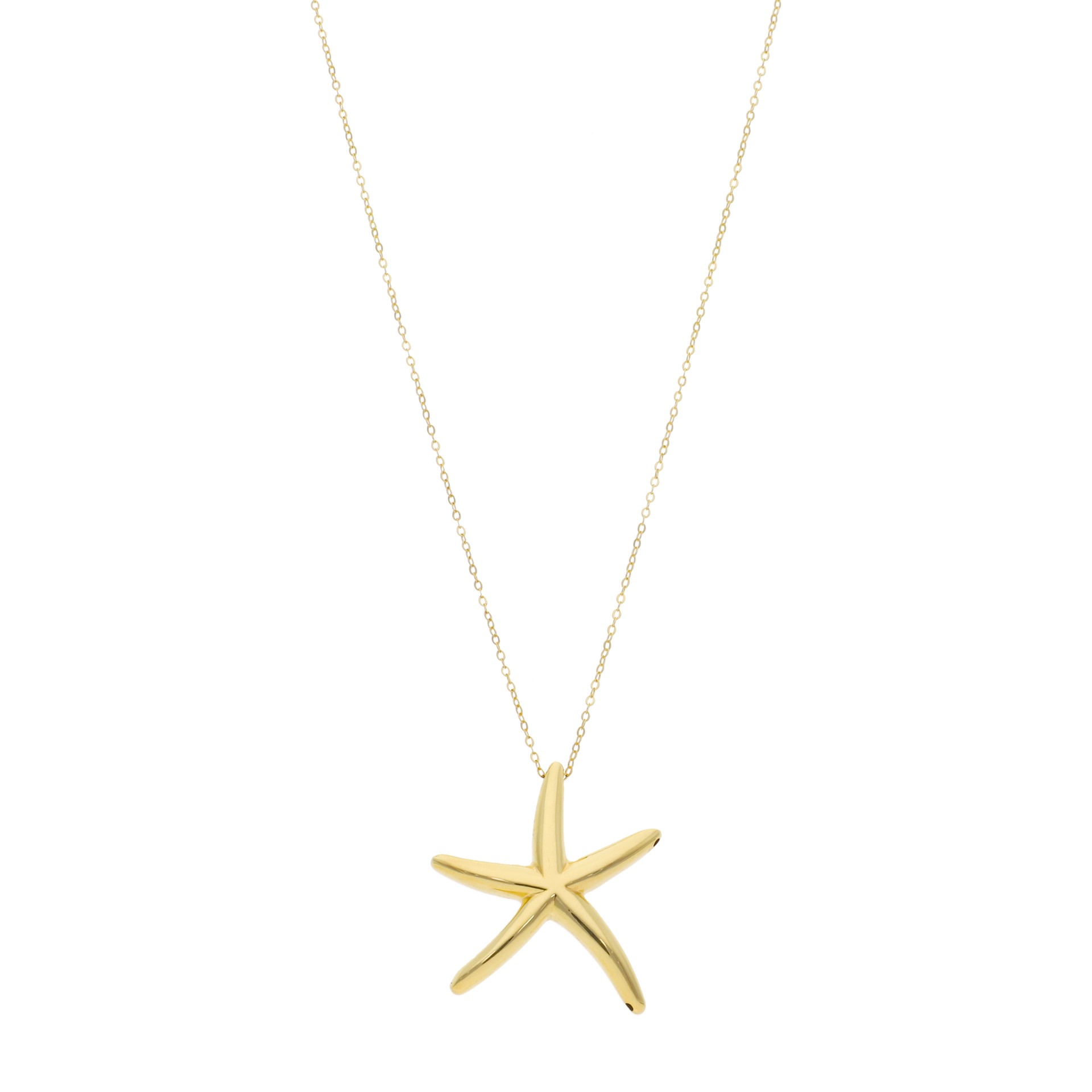 Cadena en oro amarillo 14K 2.1 gr con dije hueco de estrella de mar (28 mm) y broche de perico (44 cm).