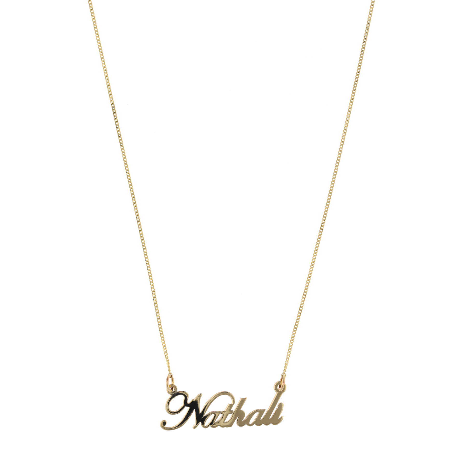 Cadena en oro amarillo 10K con dije de nombre en terminado liso (45 cm).
