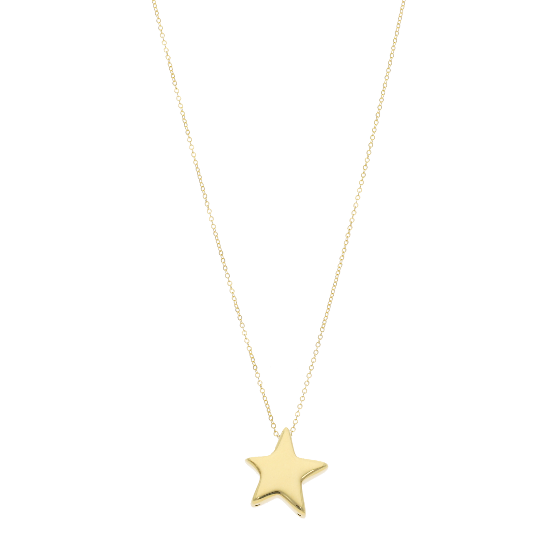 Cadena en oro amarillo 14K 2 gr con dije de estrella hueca en terminado liso (20 mm) y broche salvavidas (46 cm).