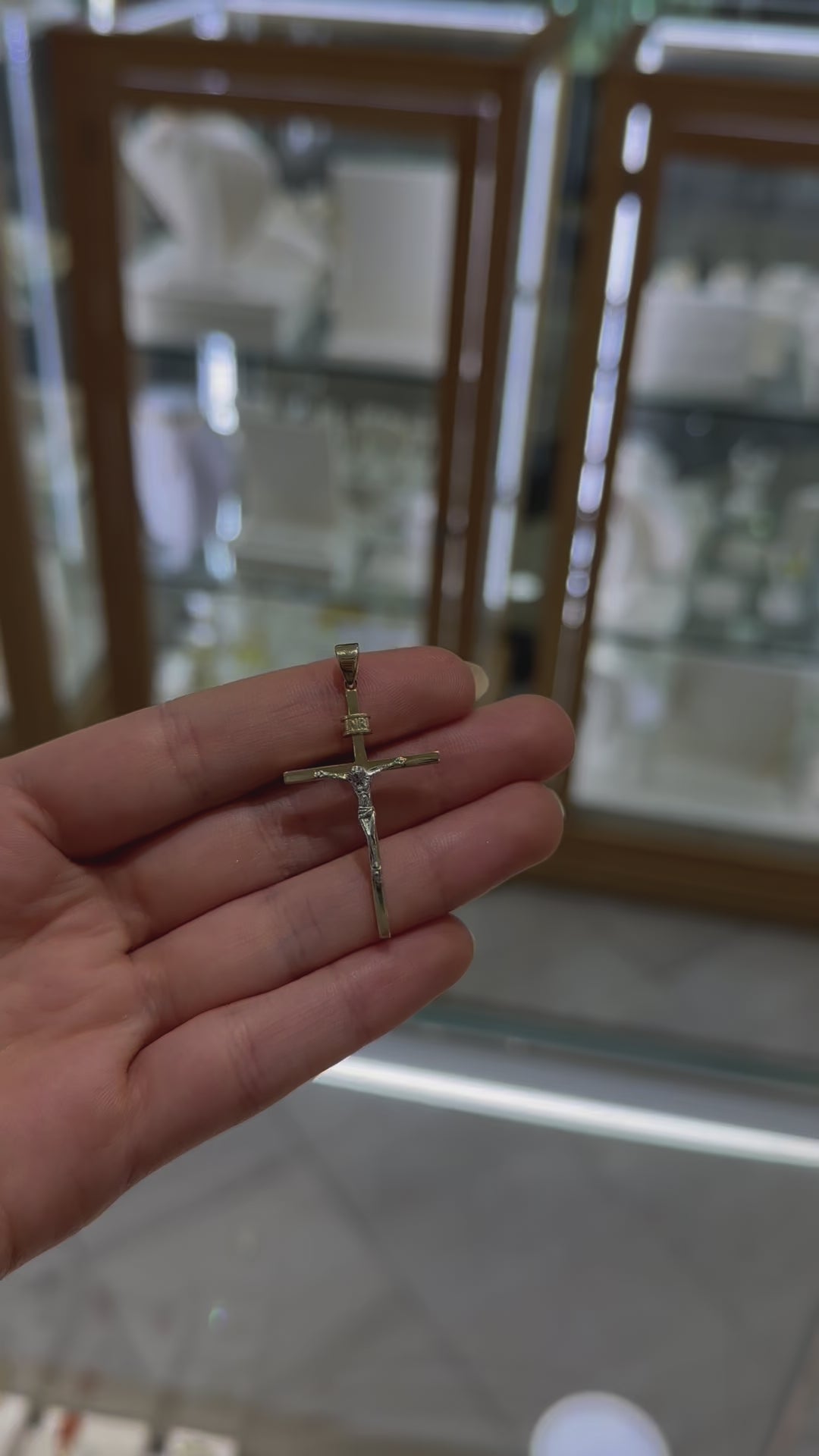 Cruz en bicolor en oro amarillo y blanco 14K 3.3 gr con circonias (32 mm x 23 mm).