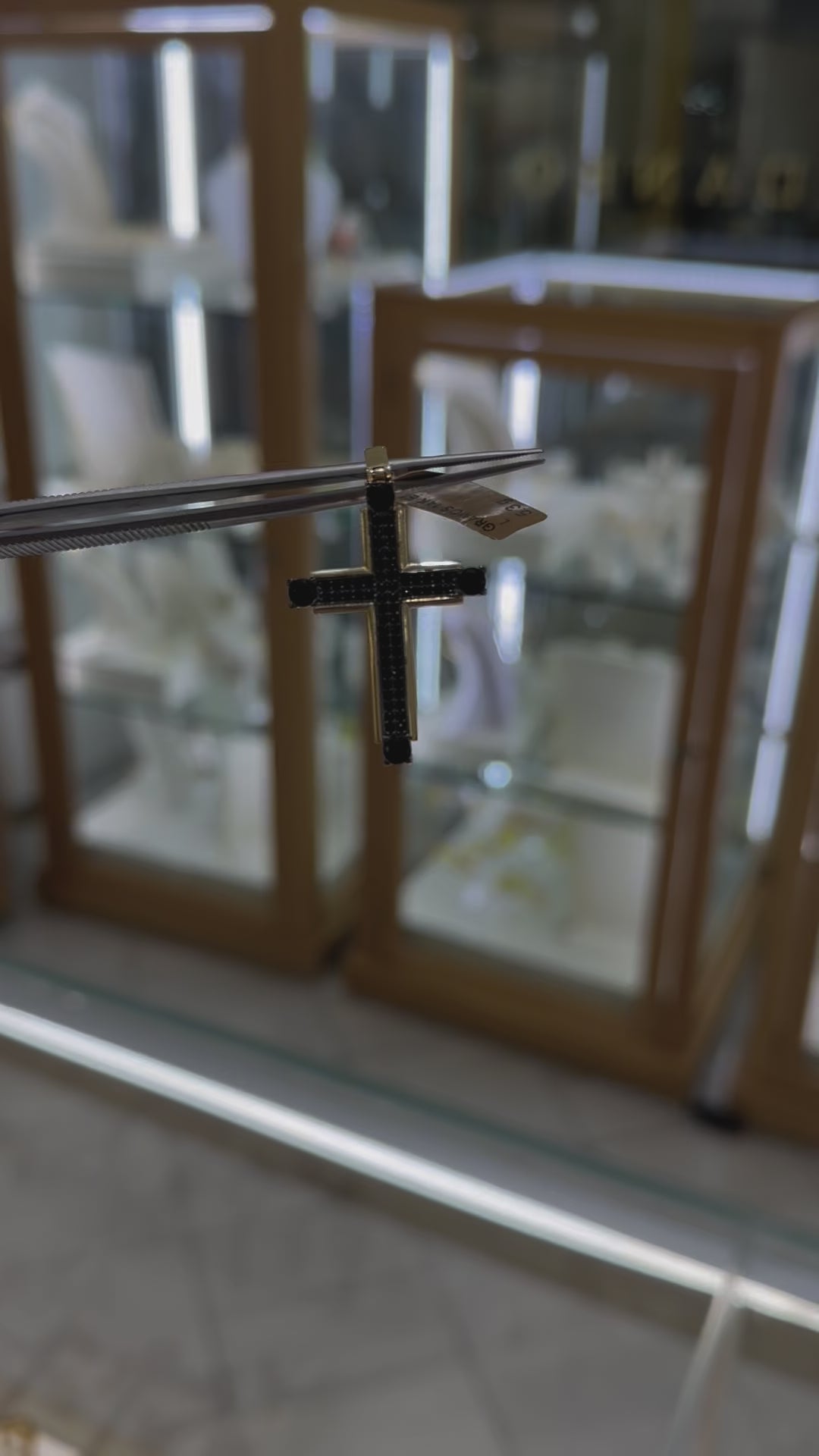 Cruz en oro amarillo 14K 5.3 gr con circonias (34 mm x 26 mm).