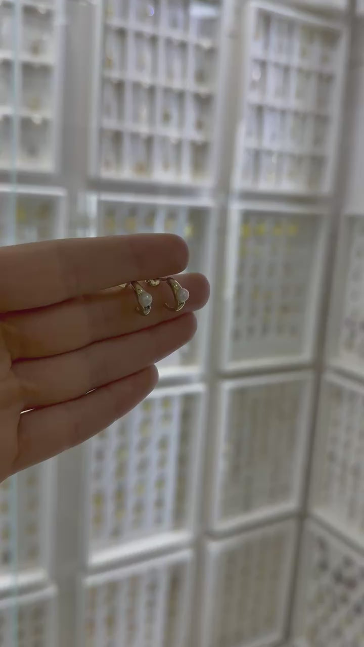 Medias arracadas en plata amarilla lisa con perla blanca y sistema de mariposa (12 mm).